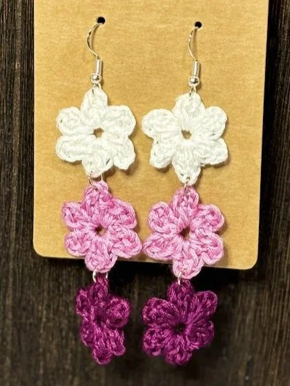Introducing our stunning Multicolor 3 Flower Drop Earrings! Crafted with care, these eye-catching earrings measure 1x3 inches, making them the perfect statement accessory for any occasion. Each earring features three vibrant flowers, intricately crocheted in a variety of colors that showcase your unique style.